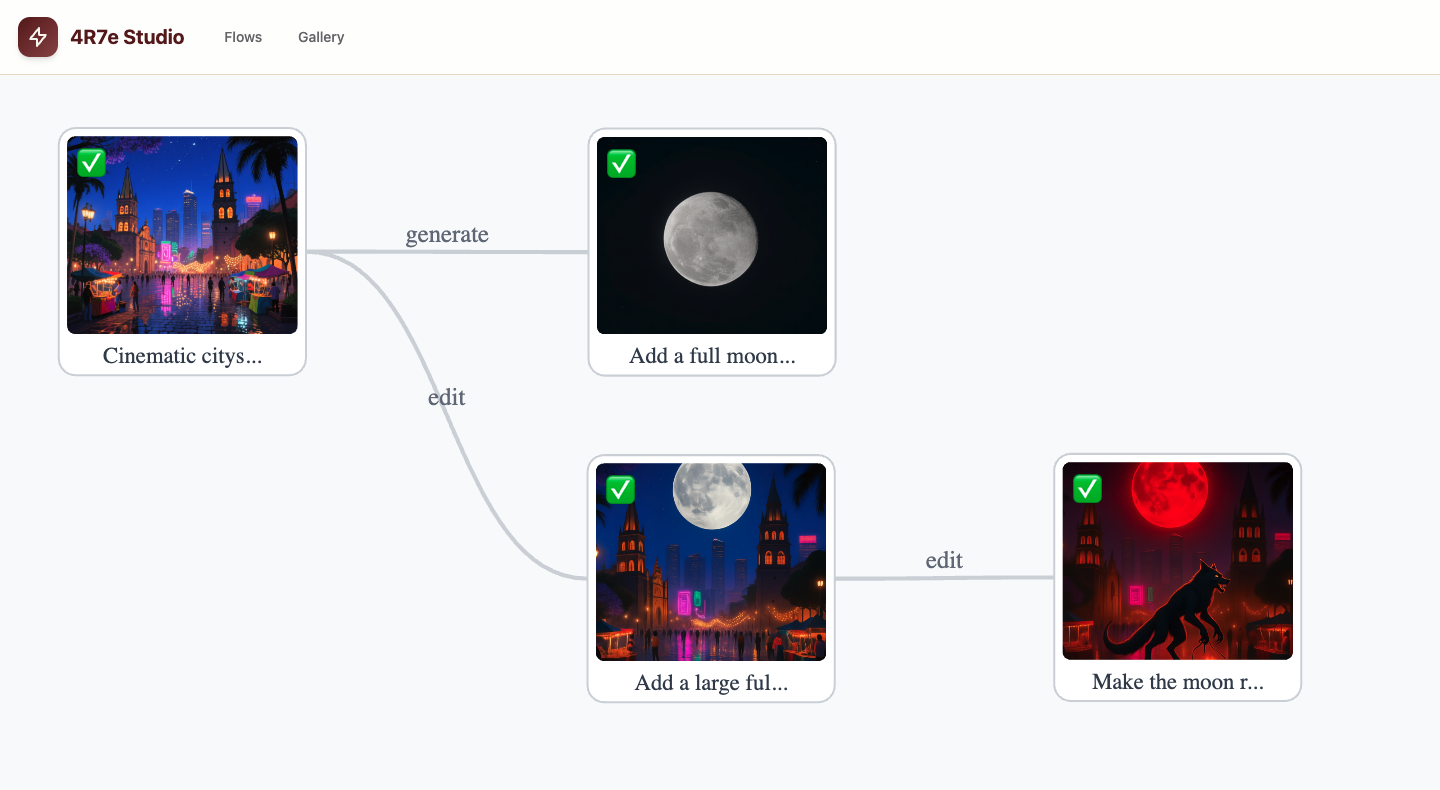Image generation & edition platform implemented via a custom python backend that executes QWEN models and displays outputs into a React frontend. The edition workflows allows easily referencing previous images as upstream inputs for the upcoming node.